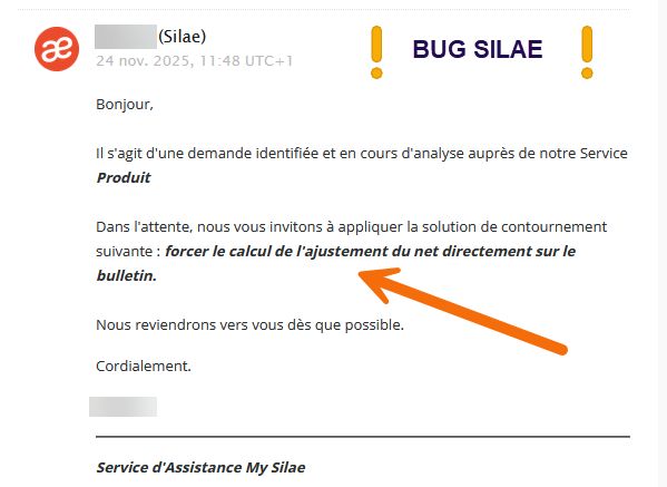🛑 𝐁𝐮𝐠 𝐒𝐢𝐥𝐚𝐞 ! 👉 𝐕𝐞́𝐫𝐢𝐟𝐢𝐞𝐳 𝐯𝐨𝐬 𝐦𝐚𝐢𝐧𝐭𝐢𝐞𝐧𝐬 𝐝𝐞 𝐬𝐚𝐥𝐚𝐢𝐫𝐞 ! Notamment en cas de remboursement d'abonnement transport… 👀 Hier, 2 𝑏𝑢𝑔𝑠 𝑠𝑢𝑟 𝑢𝑛 𝑠𝑒𝑢𝑙 𝑏𝑢𝑙𝑙𝑒𝑡𝑖𝑛 (oui, deux 😅) 1️⃣ Silae intègre le remboursement de l'𝐚𝐛𝐨𝐧𝐧𝐞𝐦𝐞𝐧𝐭 𝐭𝐫𝐚𝐧𝐬𝐩𝐨𝐫𝐭 dans le calcul du net à payer à maintenir. Or en cas d'absence totale => pas de remboursement transport. ❌ Le salarié était donc ici payé 44.40€ de plus. ✅ 𝐅𝐨𝐫𝐜𝐞𝐳 𝐦𝐚𝐧𝐮𝐞𝐥𝐥𝐞𝐦𝐞𝐧𝐭 dans ce cas votre "ajustement du net" afin de retrouver le net souhaité 2️⃣ Silae gère mal son décompte d'IJSS brutes (pas tout le temps heureusement mais ça arrive !). Dans notre cas ? => Arrêt jusqu'au 01/11 => Prolongation au 03/11 Résultat ? Silae calcule les IJSS par période Le 01/11 : IJSS plafonné au montant du maintien → 0 € Du 03/11 au 30/11 => 28 IJSS Sauf que... 👉 Le salarié va toucher 29 IJSS sur la période complète. 👉 Et le maintien global est supérieur au total IJSS. Un peu difficile à comprendre sans les chiffres mais 𝐜𝐞 𝐪𝐮𝐢 𝐞𝐬𝐭 𝐚̀ 𝐫𝐞𝐭𝐞𝐧𝐢𝐫 ?👇 ✅Un logiciel peut se tromper (même le meilleur du marché) ✅ Vérifiez les calculs (alors ok pas tout le temps quand même, mais procédez par échantillonnage, ou sur des cas / des clients spécifiques) La période de paye démarre... 𝐂𝐨𝐮𝐫𝐚𝐠𝐞 𝐚̀ 𝐧𝐨𝐮𝐬, 𝐥𝐞𝐬 𝐆𝐏 ! 💪😉